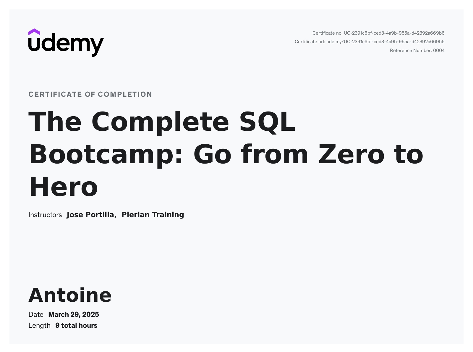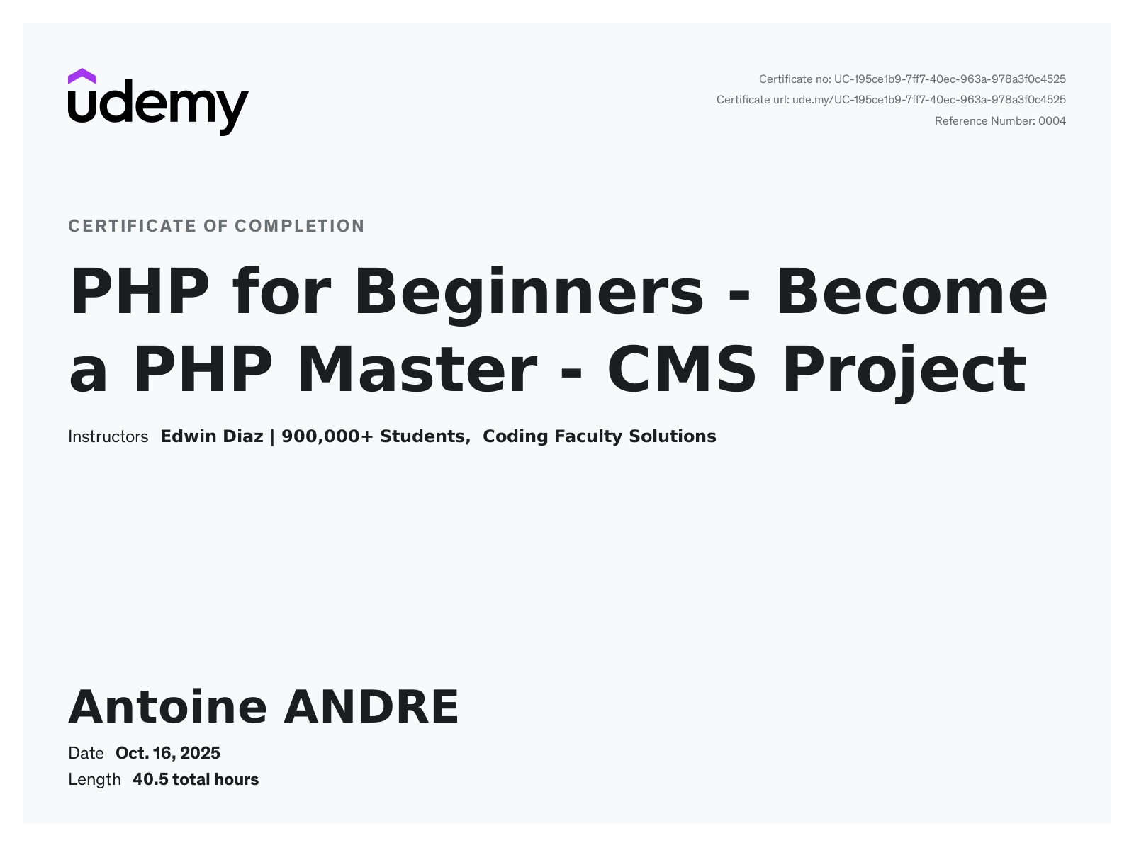 Diplômes, certifications et formations qui attestent de mes compétences techniques.